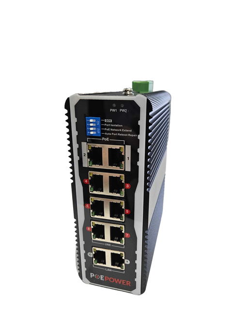 8 Port Industrial Gigabit POE Switch For Solar Installs, 12V–48V DC Input, POE+ 30W Per Port, 90W-120W Total