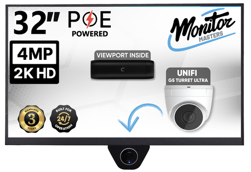 $962.9732" 4MP PVM POE Powered Public View Monitor With Ubiquiti Unifi G5 Turret Ultra Camera Holder